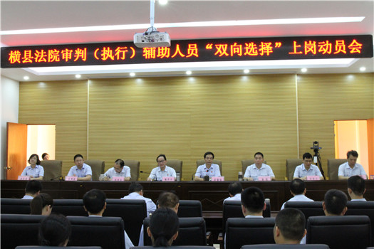 为加强队伍建设,优化审判资源配置,激发内在活力,提高司法能力,确保司法体制改革工作任务的顺利完成。6月5日上午,横县法院召开审判(执行)辅助人员“双向选择”上岗动员大会,该院党组书记、院长施善兵作了动员讲话,并提出了具体要求。 动员会上,施院长指出,实行双向选择是进一步深化干部人事制度改革,优化队伍建设,深入推进司法体制改革的一项主要内容,是全面提高司法能力的一项举措。本次“双向选择”的对象是现在审判(执行)部门的在职在编的非入额法官、书记员和聘用书记员。希望相关人员要充分认识实行双向选择的重要性和必要性,端正态度,积极参与,从法院改革大局出发,正确对待岗位调整。