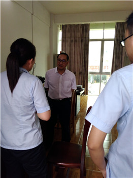 ??6月21日上午,横县法院党组书记、院长施善兵一行轻车简从,来到达校椅法庭指导“百日清案”工作。 当天,施院长详细询问了校椅法庭在“百日清案”活动中立案、结案等工作的进展情况,并认真听取该庭负责人对目前审判资源配置等问题的汇报,李桂英庭长表示,法庭虽然面临的困难不少,新立案件多,送达难等,但是全庭干警工作热情高,结案速度快,一定按照院党组的工作部署,按时按量完成“百日清案”任务。